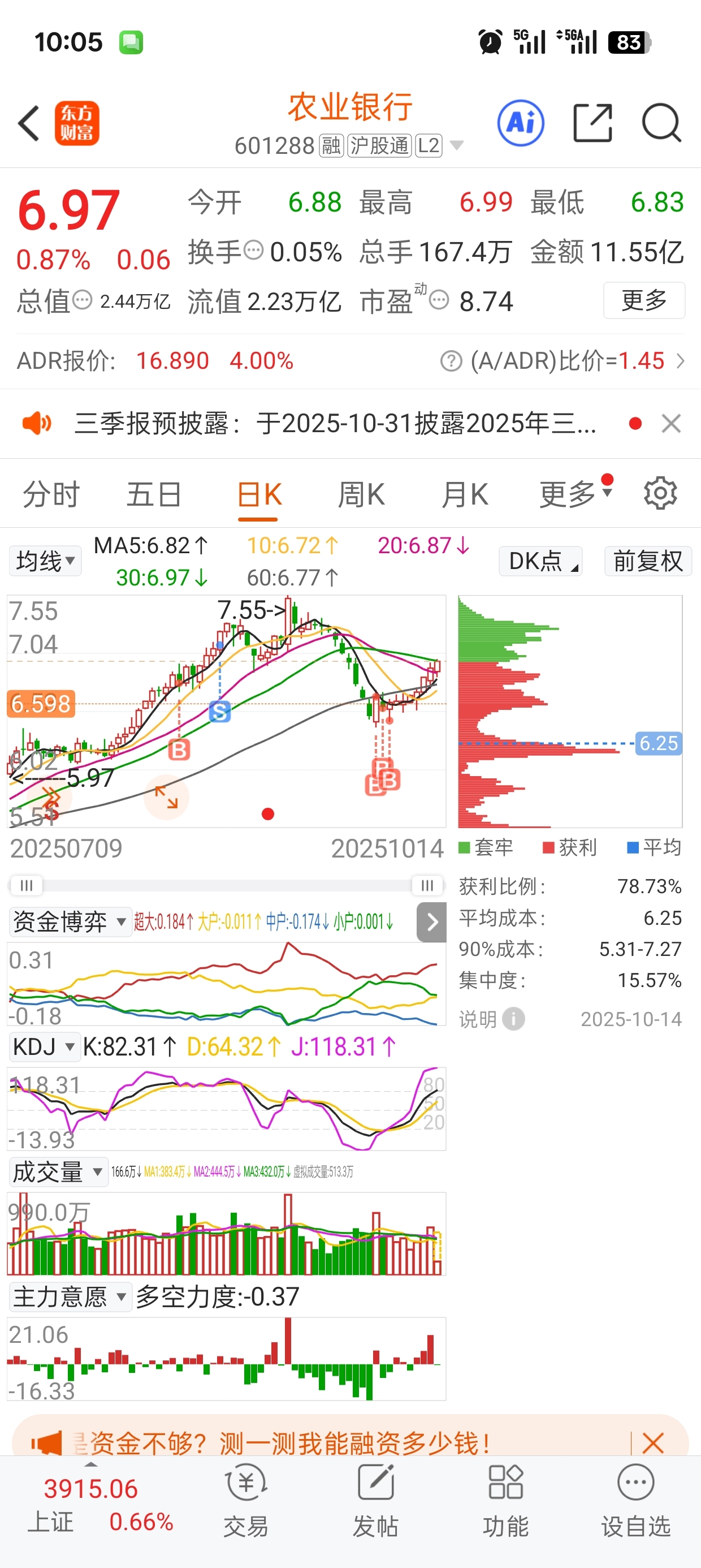$农业银行(SH601288)$ 虽然涨得慢,但确确实实有在涨,加油