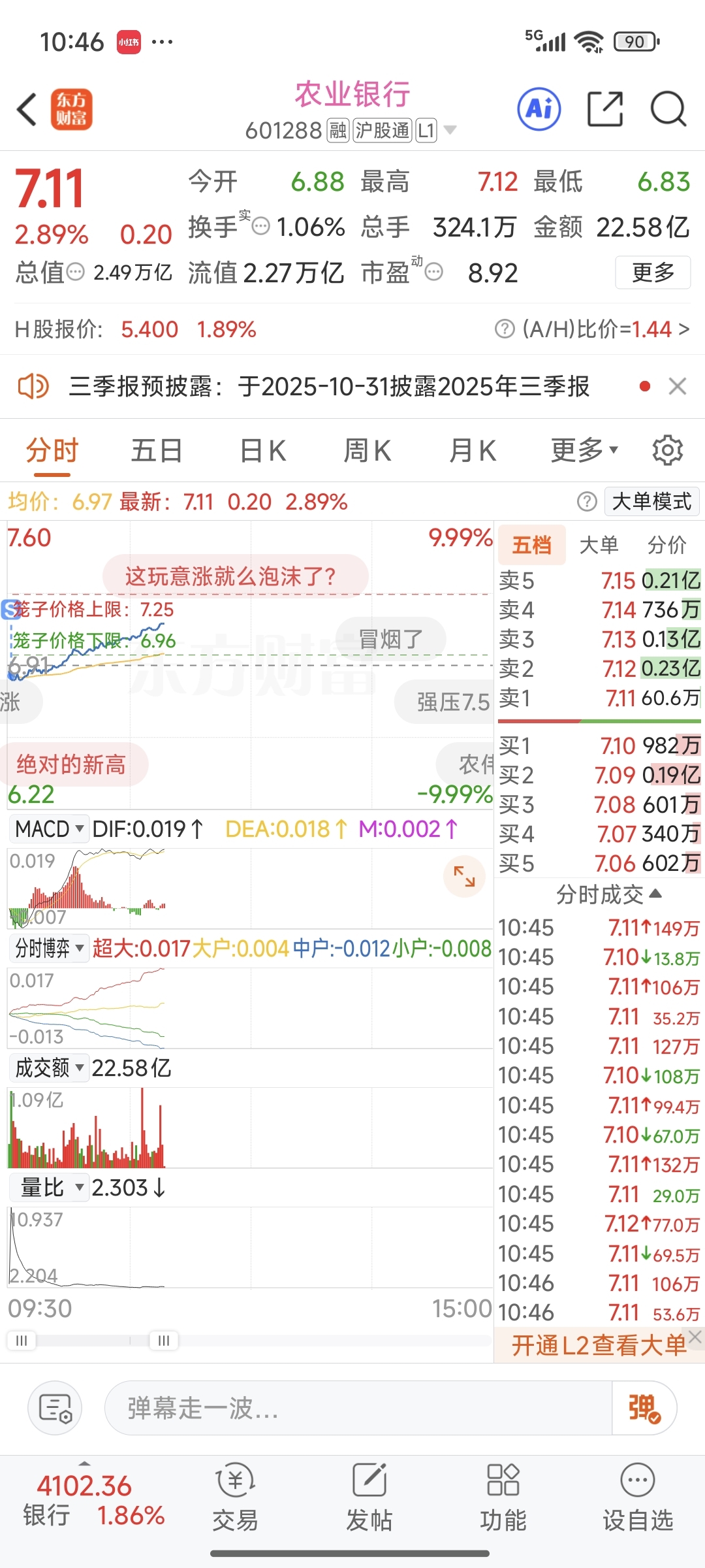 $农业银行(SH601288)$ 又卖飞了