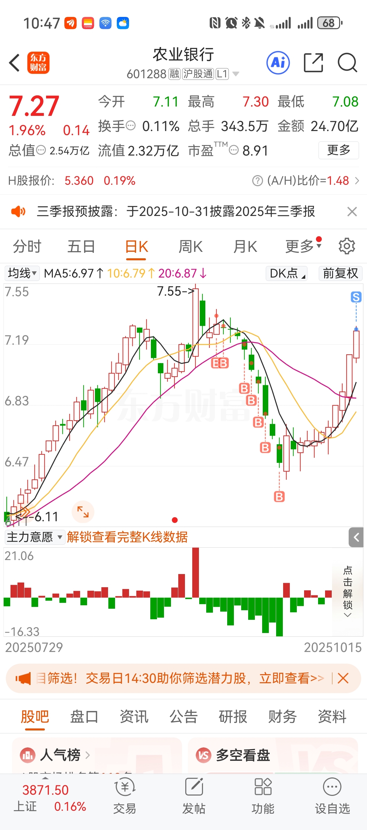 $农业银行(SH601288)$ 留下发大财,撤退了