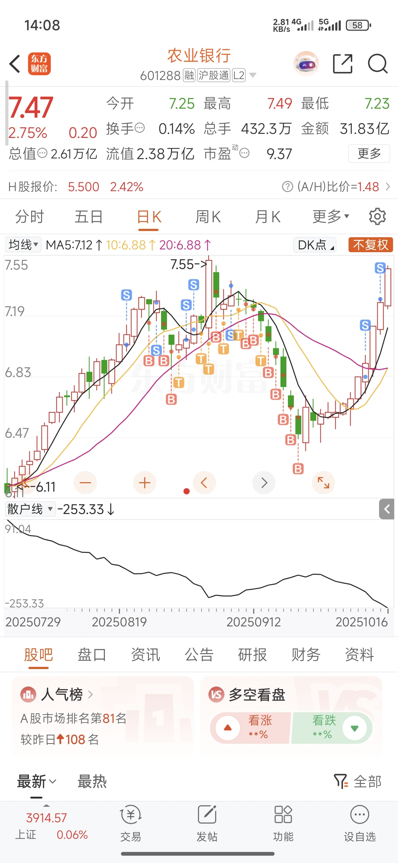 $农业银行(SH601288)$ 任你风吹雨打,我自巍然不动