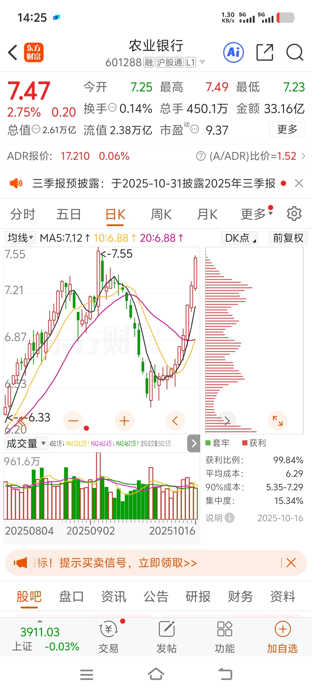 $农业银行(SH601288)$ 又V上来了