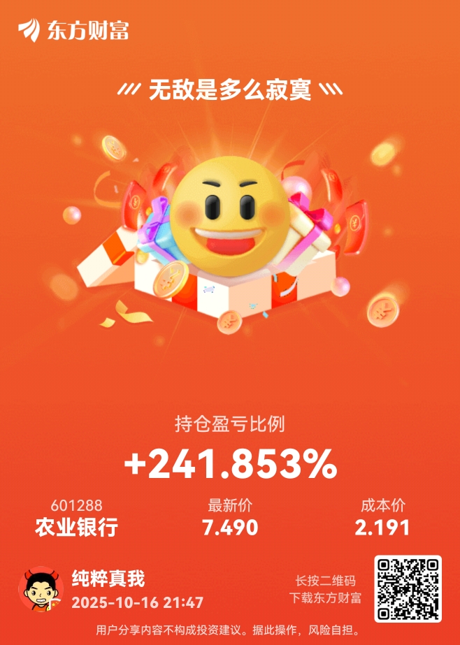 $农业银行(SH601288)$ 和在别的股票里面求涨不一样,我真心希望你能跌一跌,我要求不高跌到6元就好,真心的啊,我没买够啊#炒股日记# #实盘记录#