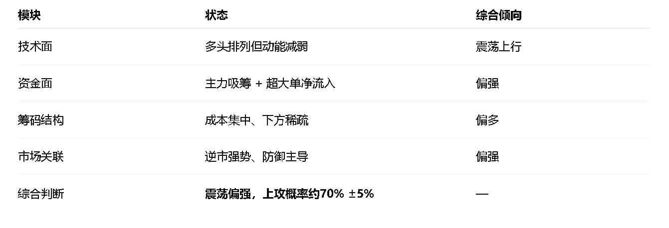 置信度:震荡偏强(70%),趋势未坏但需量能续航。