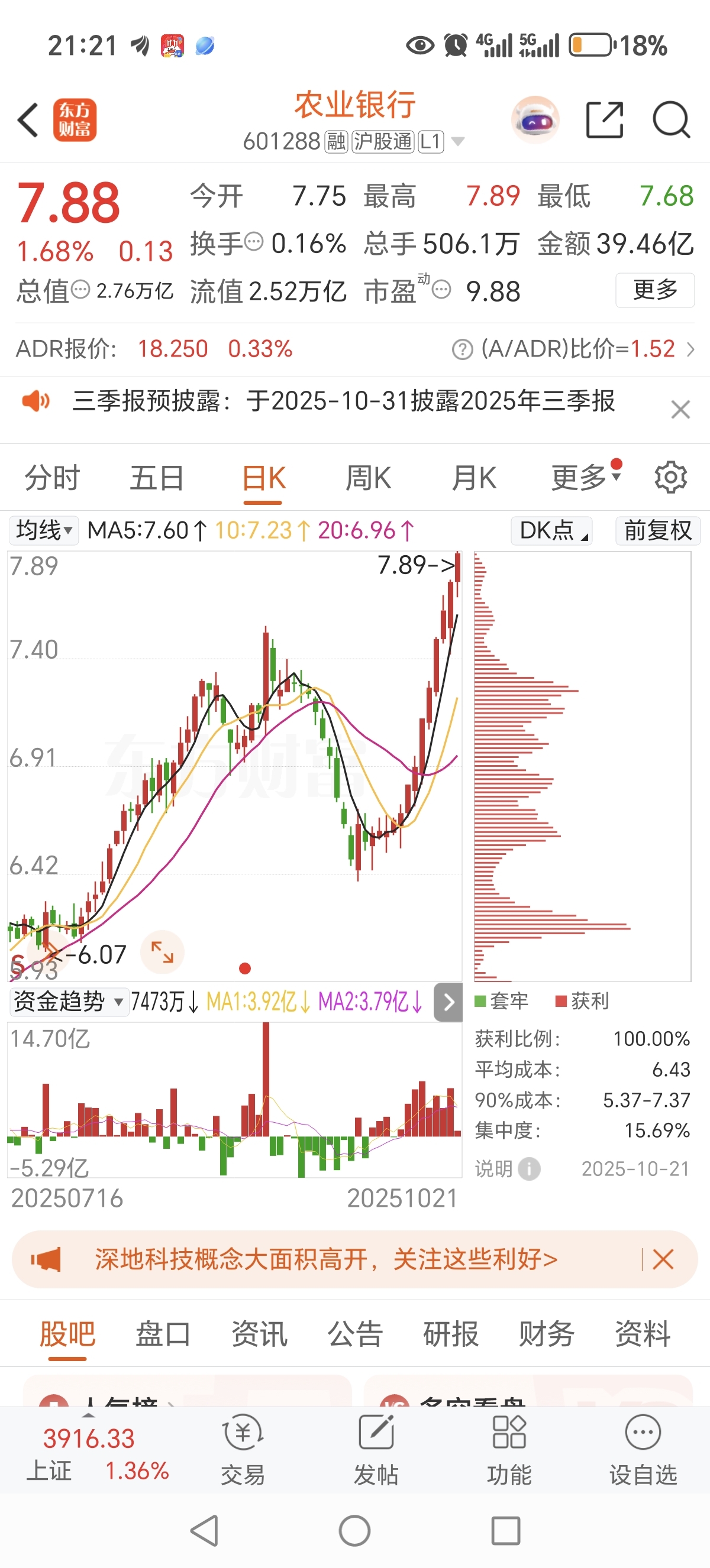 $农业银行(SH601288)$ 各位老大,啥位可以沽,从3蚊到现在,我只有30手