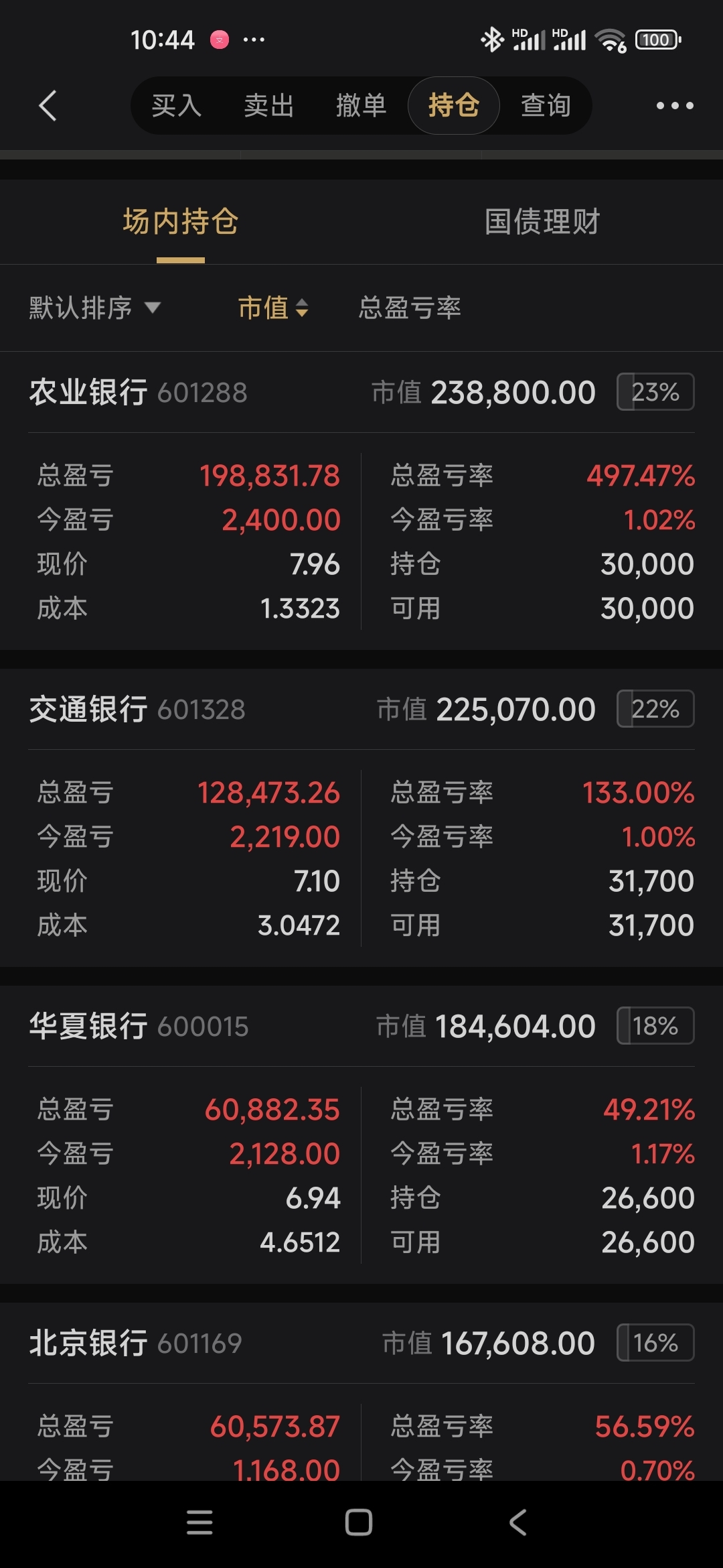 $农业银行(SH601288)$ 我的持仓成本只有一块多了,卖了不少,全是银行股......