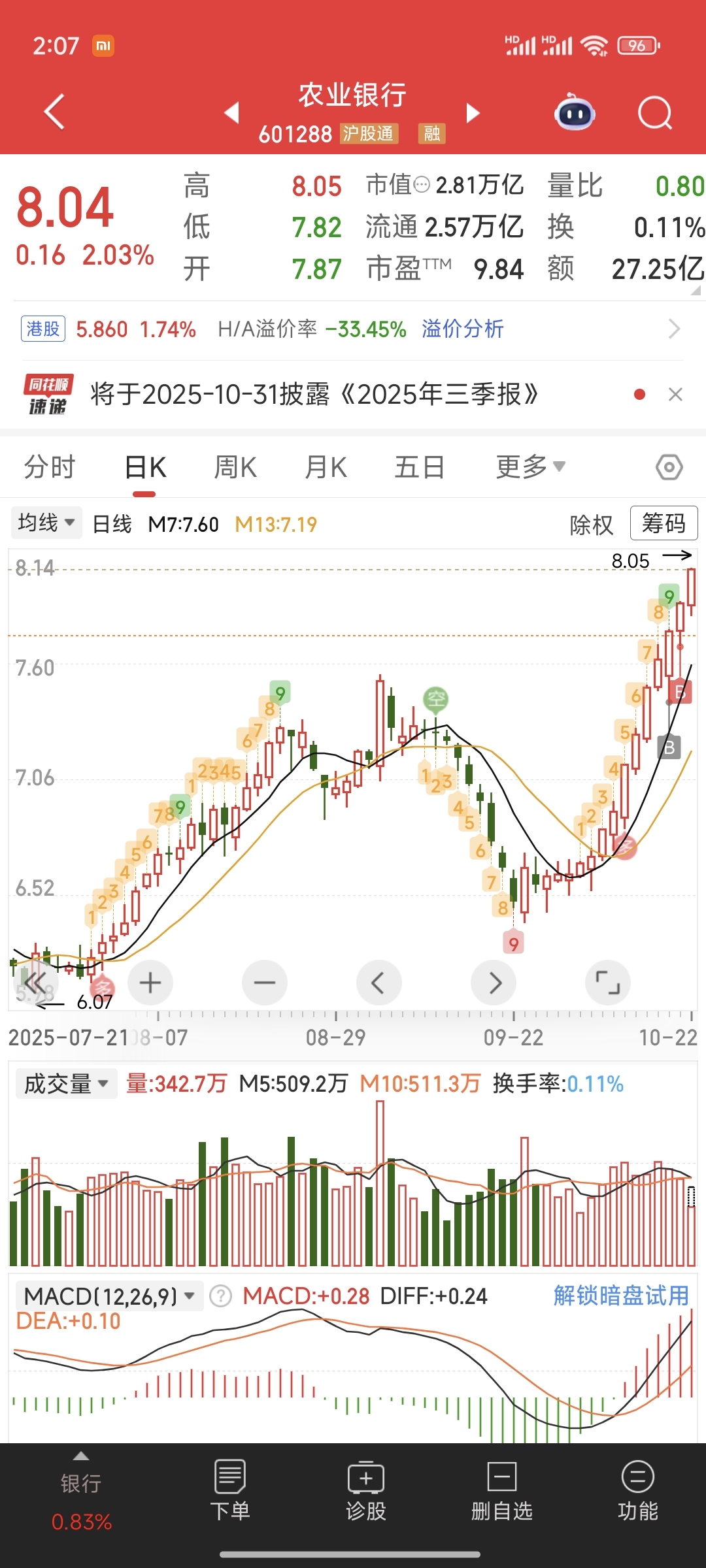 $农业银行(SH601288)$ 还有9连,越怕越涨