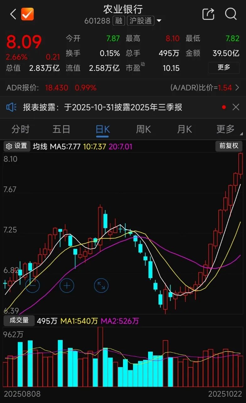 AI摘要:机构认为 A 股可关注内需和科技主线,国金证券提及四季度或降准降息,申万宏源称调整接近尾声。苹果国行 iPhone Air 发售,机构看好消费电子创新周期与苹果 AI 相关机遇。农业银行日线 14 连阳,机构表示银行 Q3 业绩稳,板块处价值区间,建议布局优质标的。