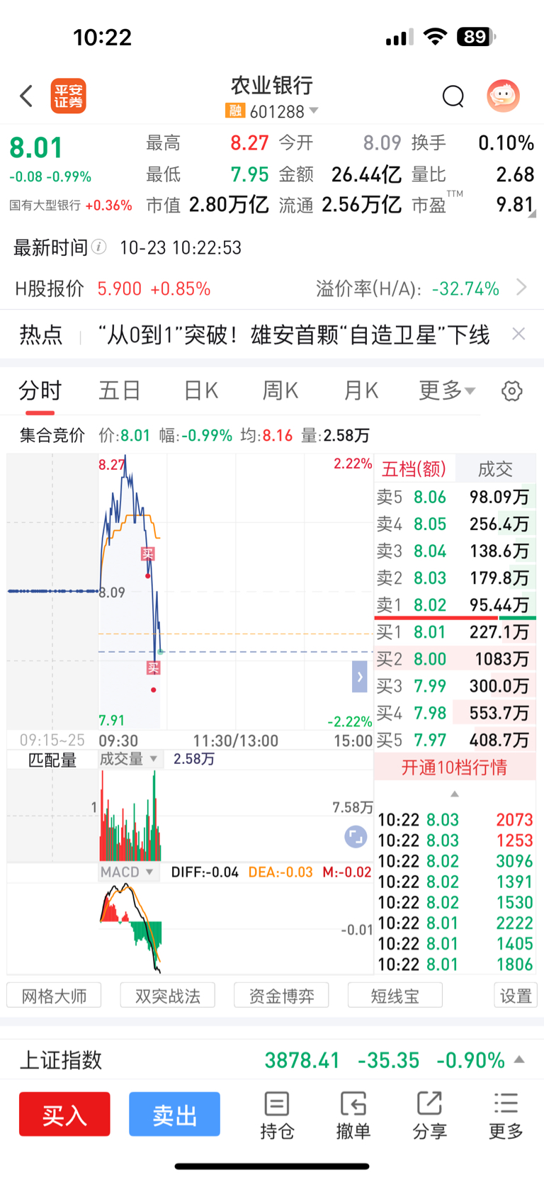 $农业银行(SH601288)$ 卧槽第一次买银行被我买绿了
