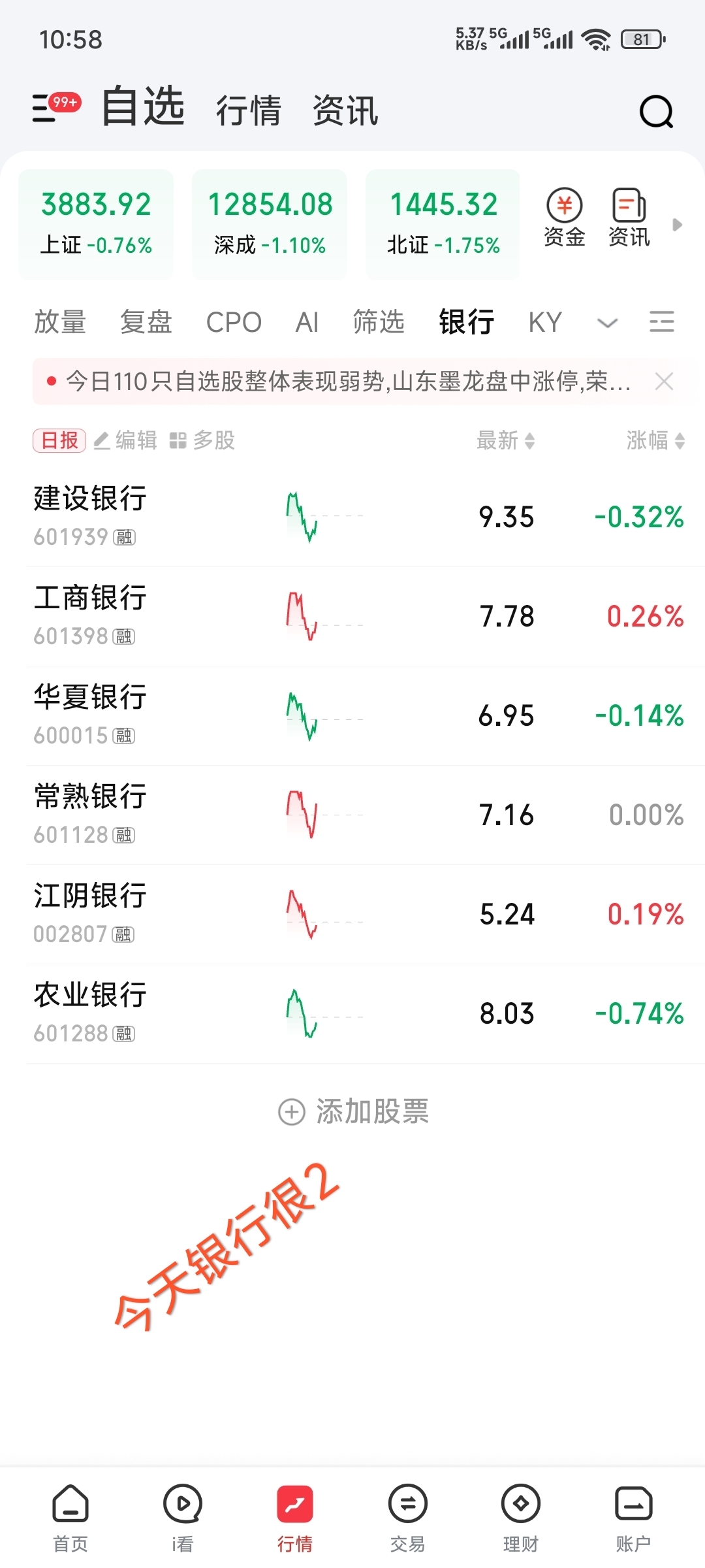 $农业银行(SH601288)$ 果然得要信早信啊,犹犹豫豫今天进了,结果就这样了