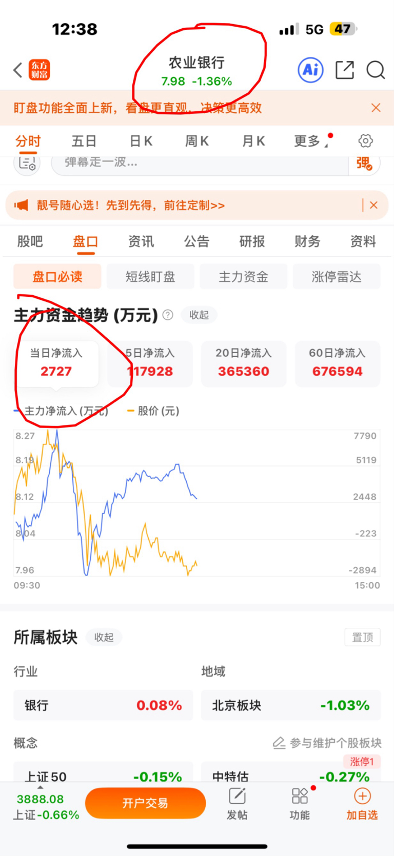 $农业银行(SH601288)$ 下午会反转吗~? 红?