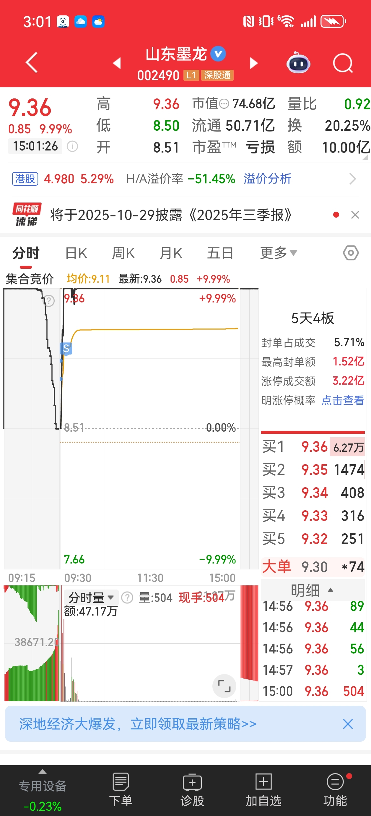大一新生5万创业炒股第二十九天,山东墨龙,气死我了