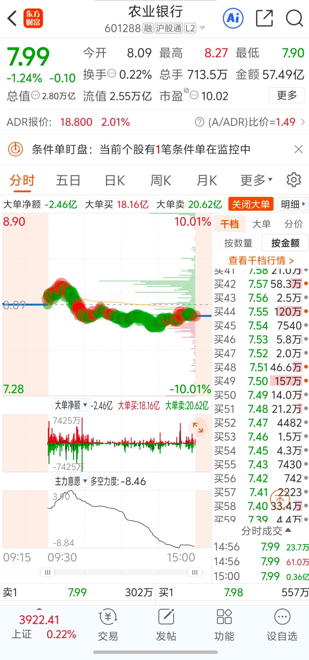 $农业银行(SH601288)$ 明天还会涨到8.26。想不被套的,就把握好机会抛