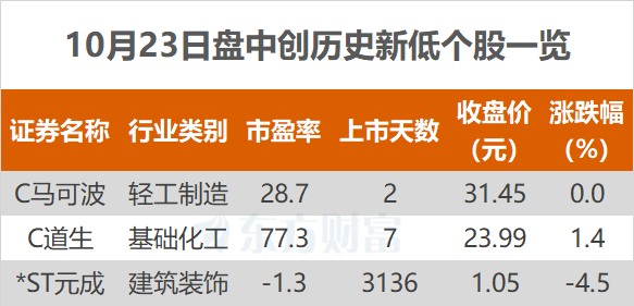 东方财富Choice数据显示,今日有3只个股盘中股价创历史新低。