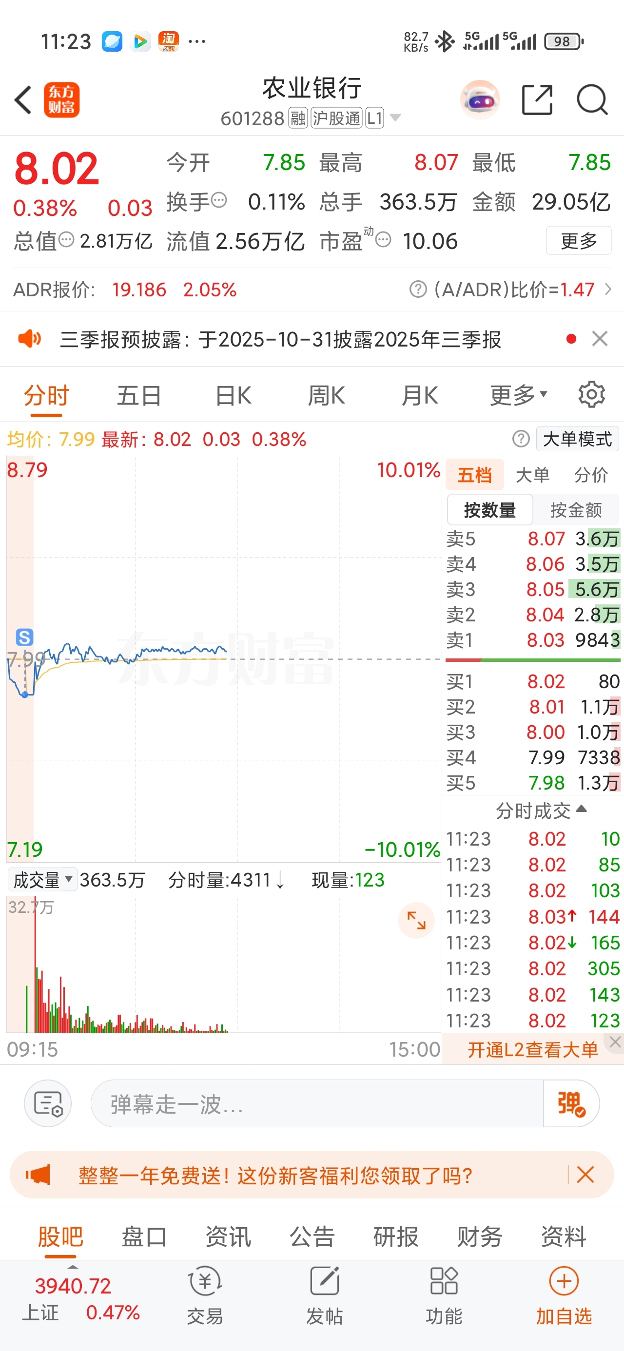$农业银行(SH601288)$ 我一卖就涨是吧