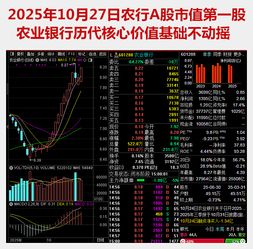 担当A股市值第一股,是农业银行历代核心价值观。基础不动摇!