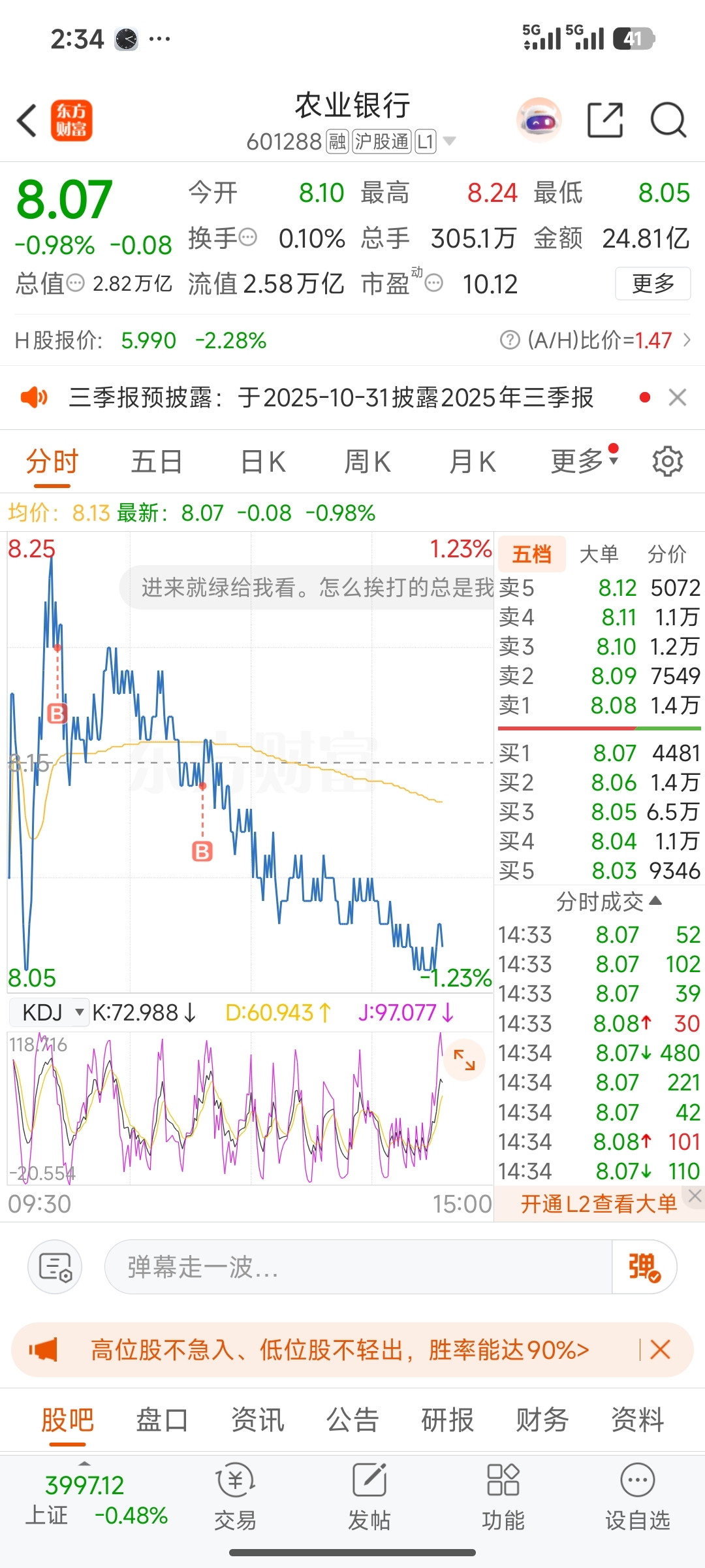 $农业银行(SH601288)$  对不起大家 我把农行买崩了