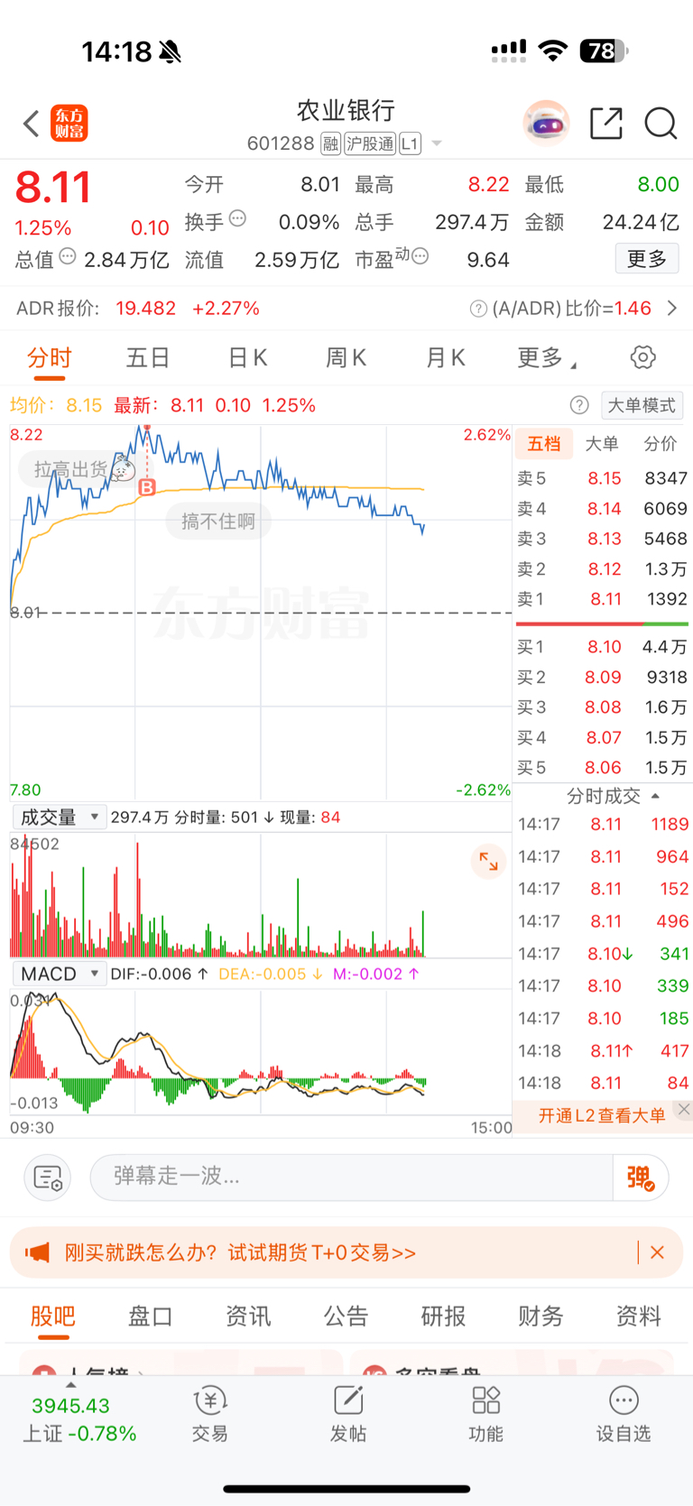$农业银行(SH601288)$ 谁懂啊,我买啥啥跌,买银行,银行都跌