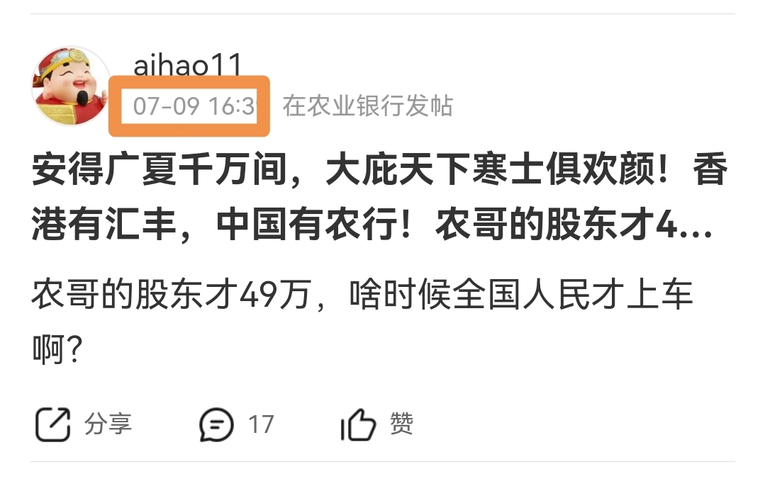 农业银行的股东人数才49万,什么时候才能达到2.4亿啊?