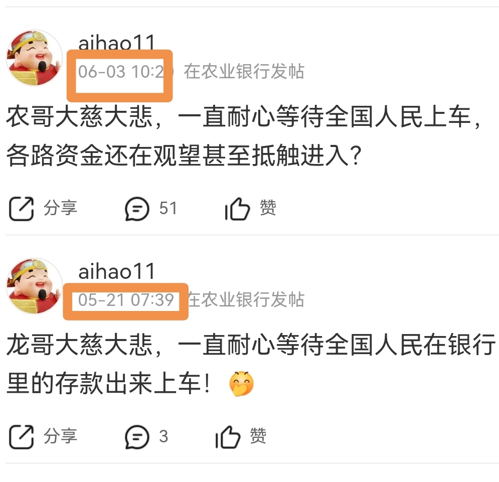 $农业银行(SH601288)$ ,重仓持有农业银行两三年以上的朋友估计不少,他们成本都很低,可能也就两元多,相信他们都把农业银行当做收藏的珍品,不会轻易卖出,甚至永远不卖,做为传家宝,传给子孙后代,不知你是不是也有这样的打算?