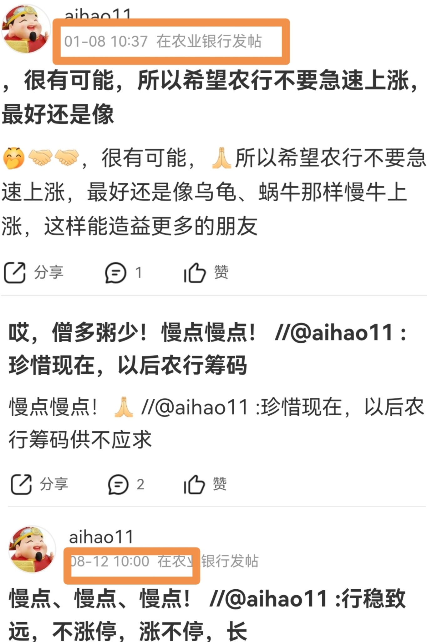 $农业银行(SH601288)$ ,重仓持有农业银行两三年以上的朋友估计不少,他们成本都很低,可能也就两元多,相信他们都把农业银行当做收藏的珍品,不会轻易卖出,甚至永远不卖,做为传家宝,传给子孙后代,不知你是不是也有这样的打算?