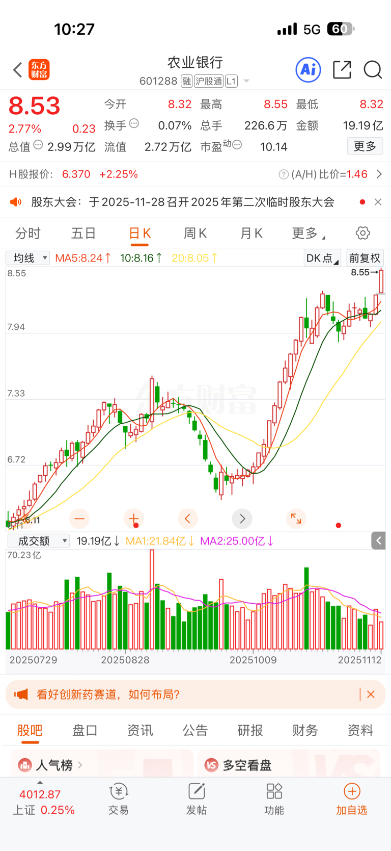 $农业银行(SH601288)$ 这线画的真好,简直艺术