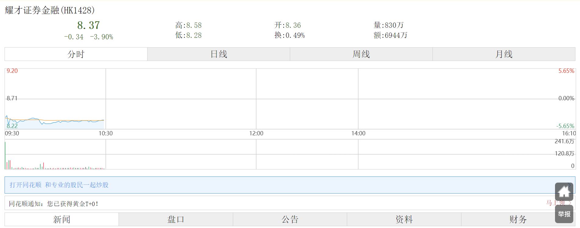 此外,11月12日,港股耀才证券金融低开,截至发稿,跌近4%,最新股价报8.37港元/股。