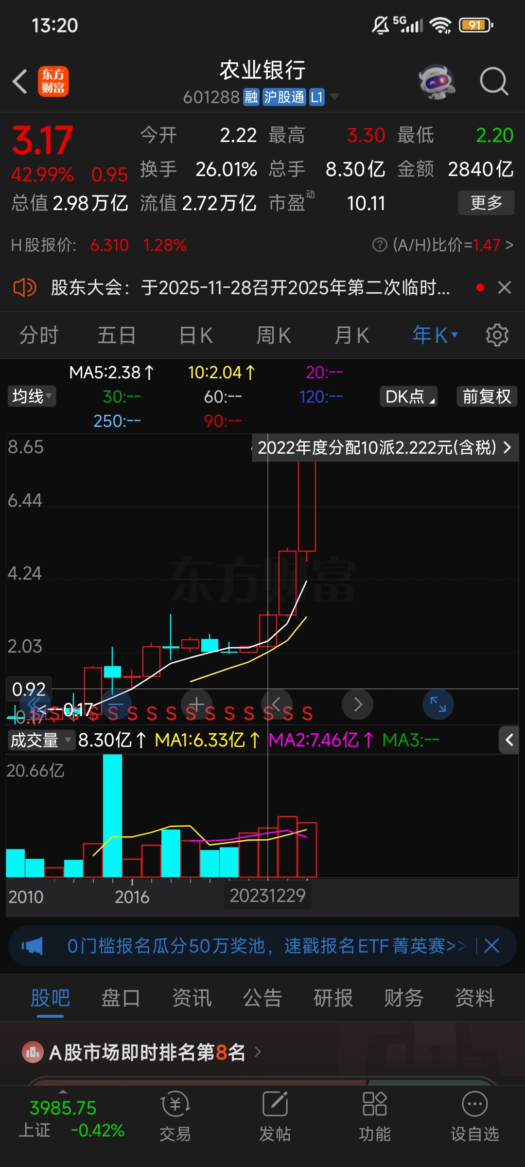$农业银行(SH601288)$ 这才是真正的牛市