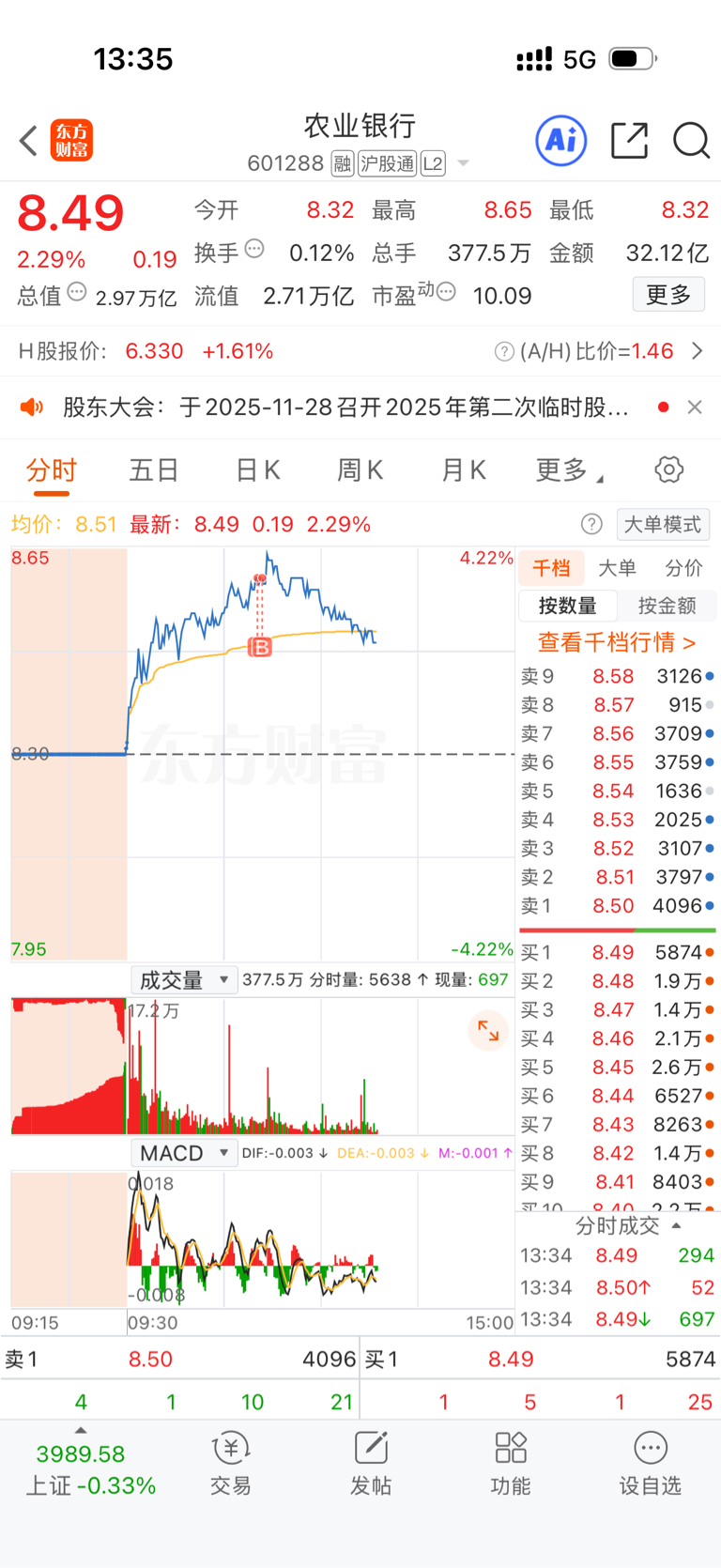 $农业银行(SH601288)$ 主力缺我小韭菜这点钱吗