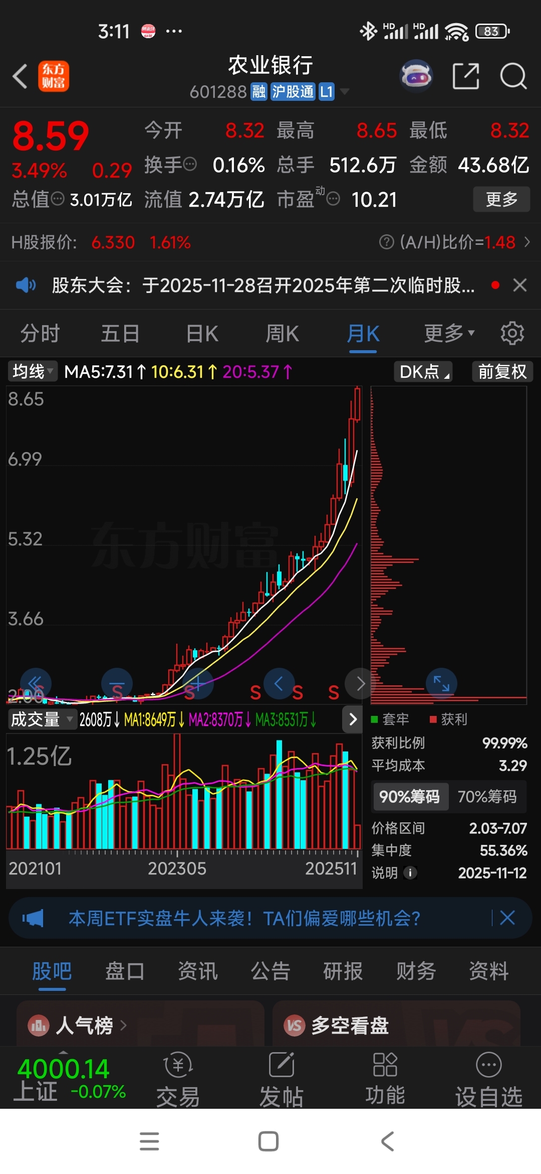 $农业银行(SH601288)$ 这样的上升曲线你看见过吗,这就是大牛股,龙头.........