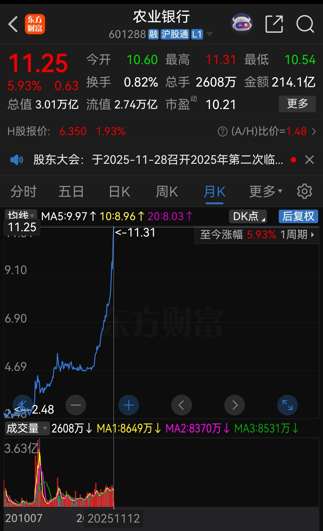 $农业银行(SH601288)$ 指数就是第三艘航母级别的超级大盘股拉起滴!