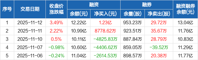 农业银行:融资净买入1.23亿元,融资余额12.22亿元(11-12)