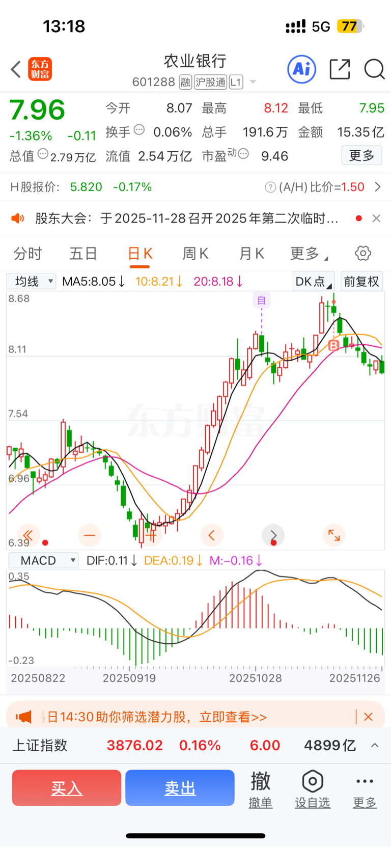 $农业银行(SH601288)$ 让我看看还有多少人跟我一样是套在山顶的