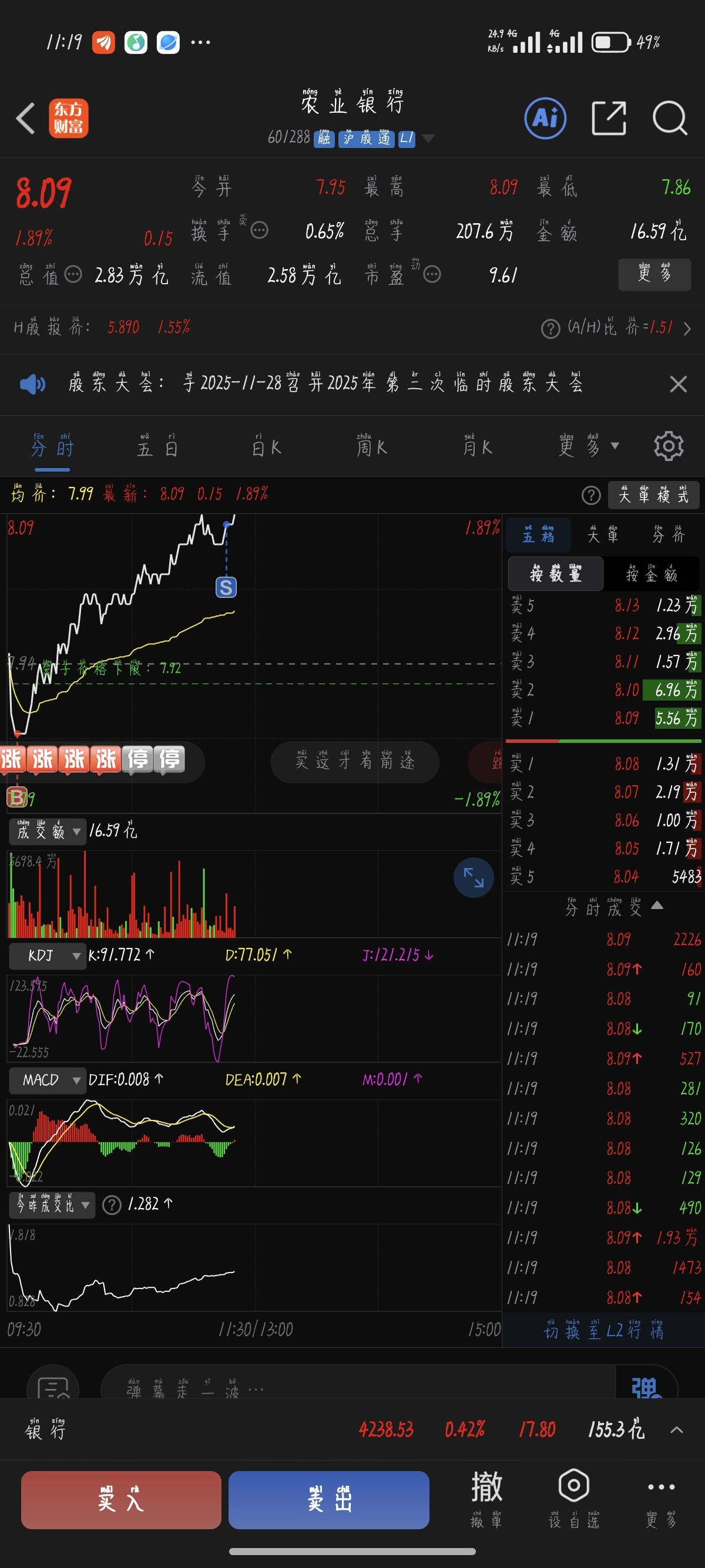 $农业银行(SH601288)$ 也不知道接的是谁的筹码,感谢主力,感恩国家