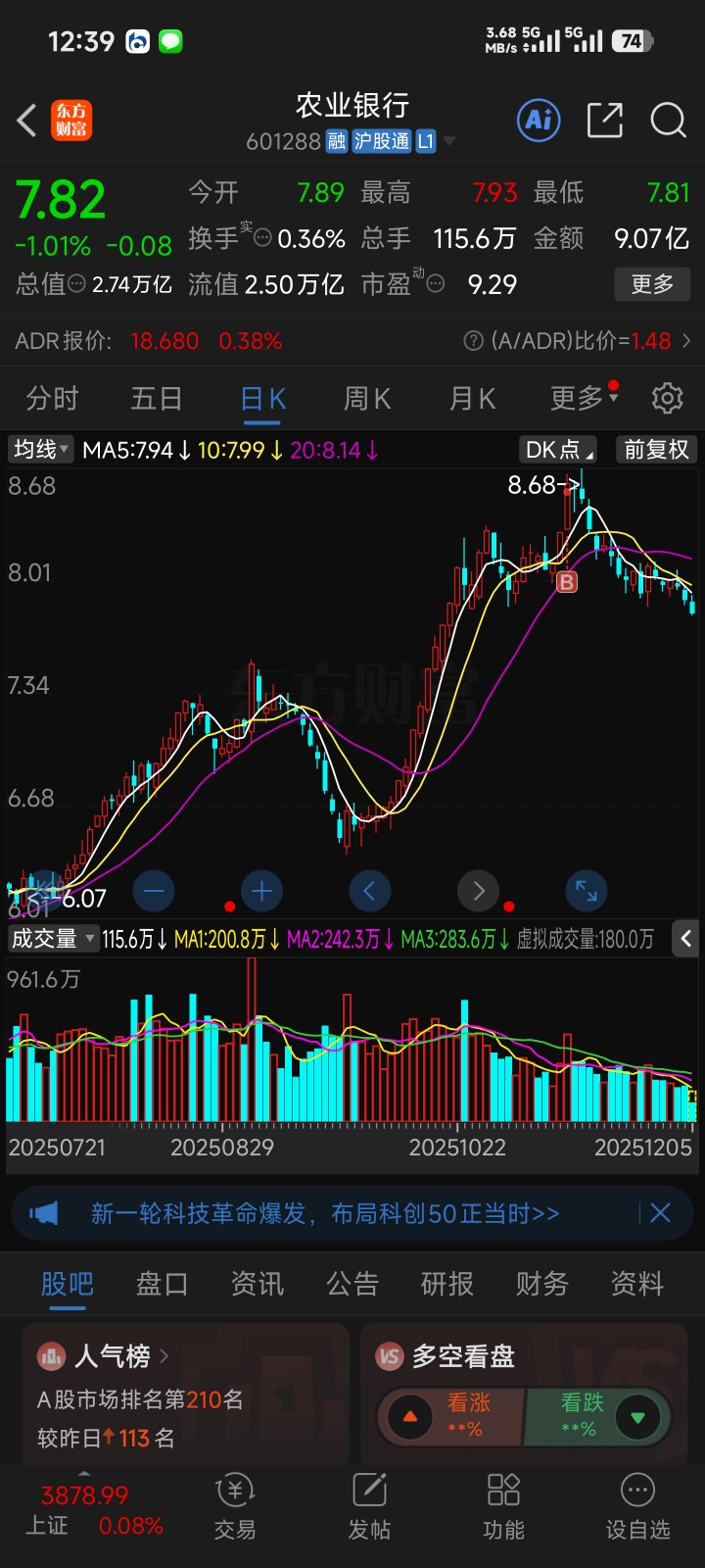 $农业银行(SH601288)$ 这是买在了山顶上吗