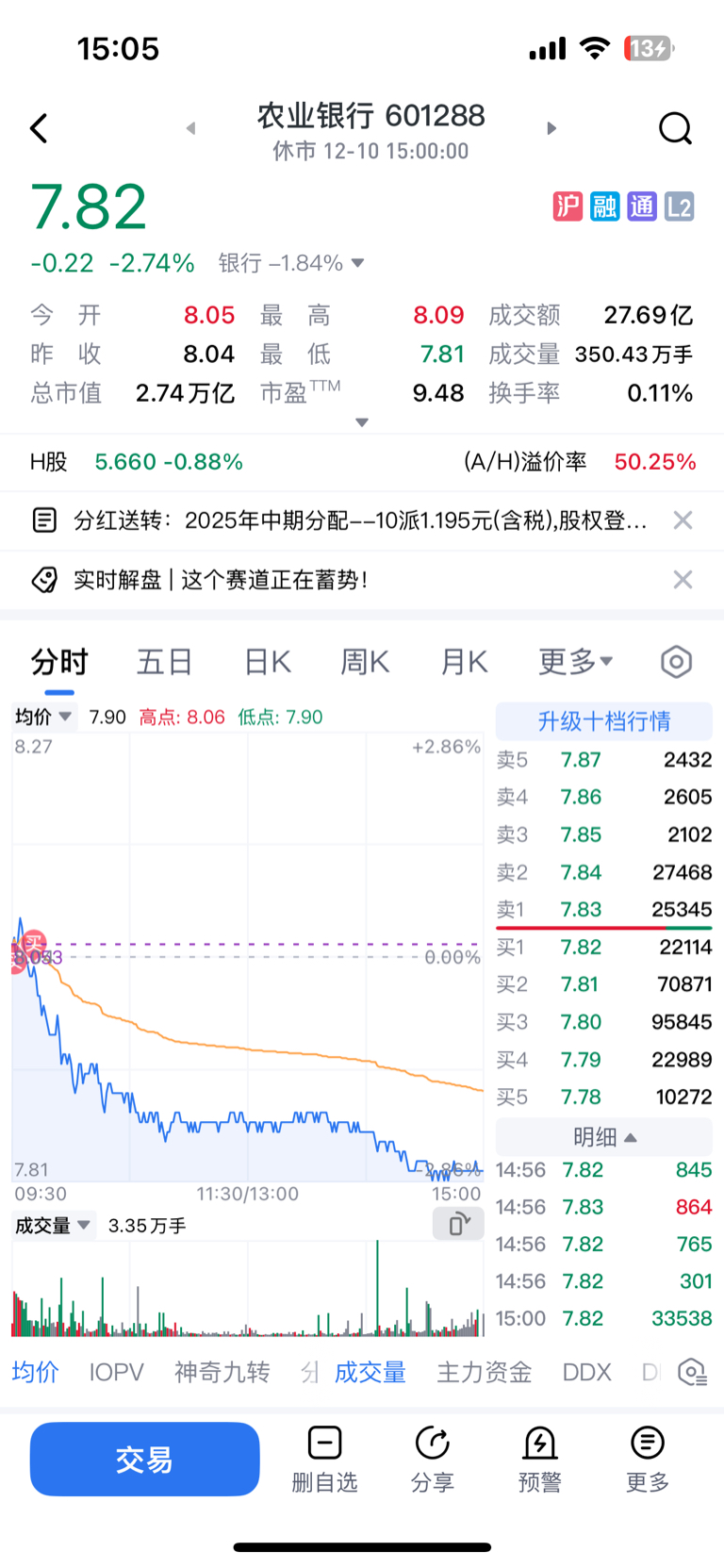 $农业银行(SH601288)$ 历史上第一次买银行,当天就大跌;感觉主力盯着我