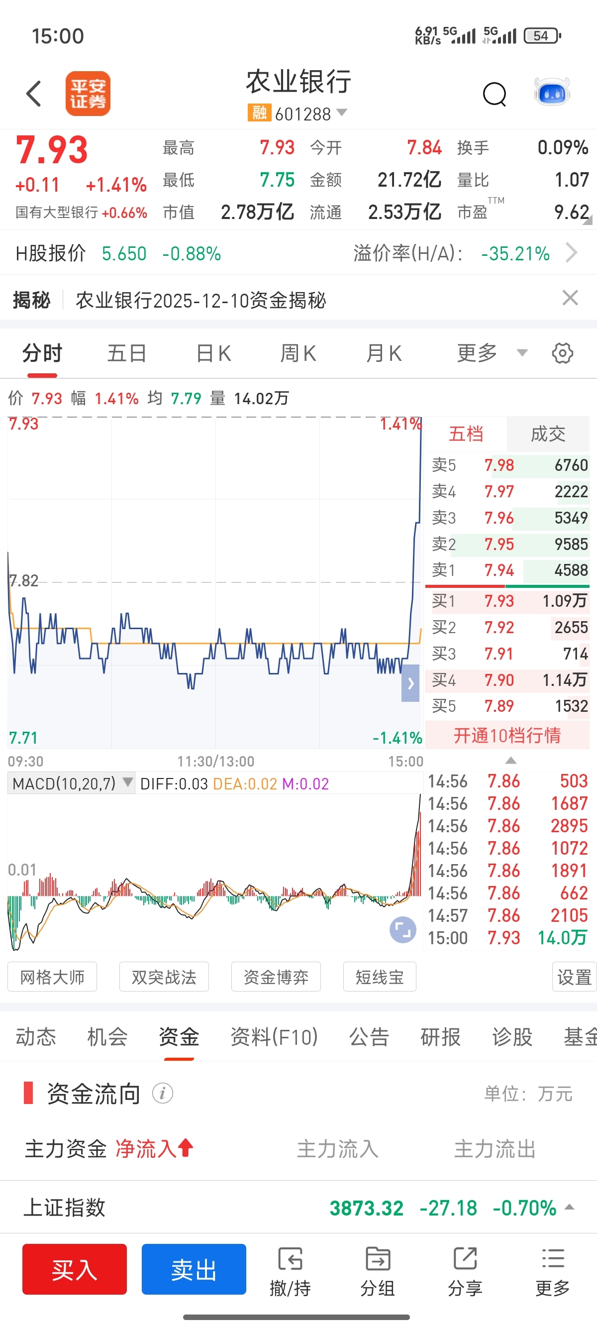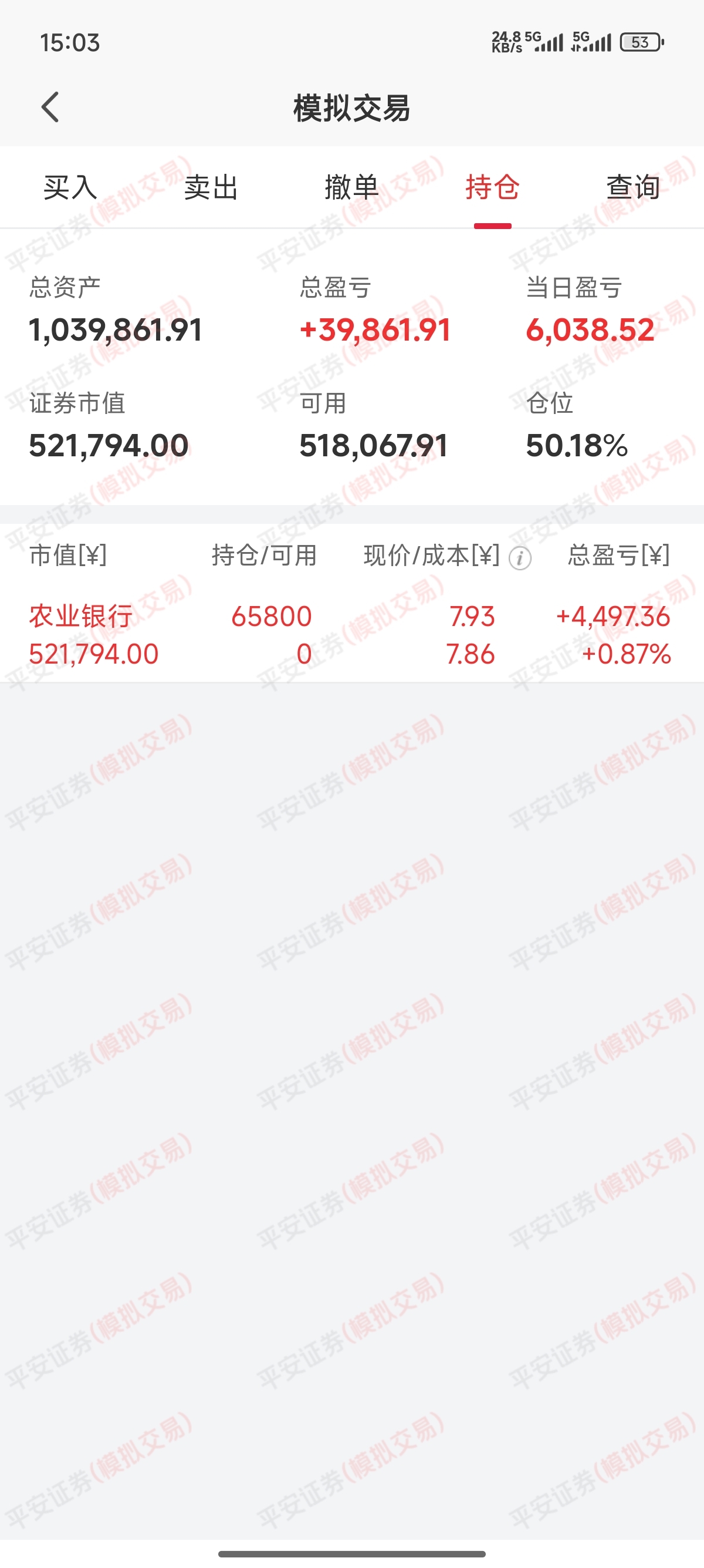 $农业银行(SH601288)$ 尾盘看见异动,买了50%仓位,竞价给了惊喜