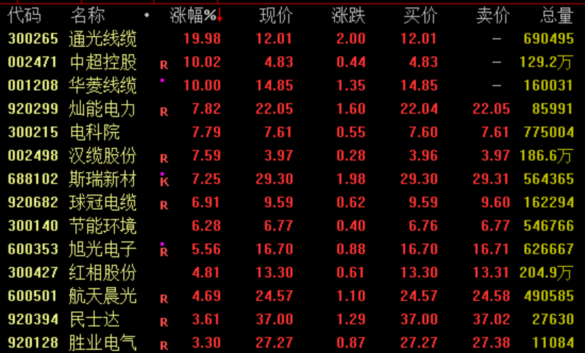 特高压概念盘中强势拉升,截至收盘,通光线缆20%涨停,中超控股、华菱线缆亦涨停,灿能电力涨近8%。