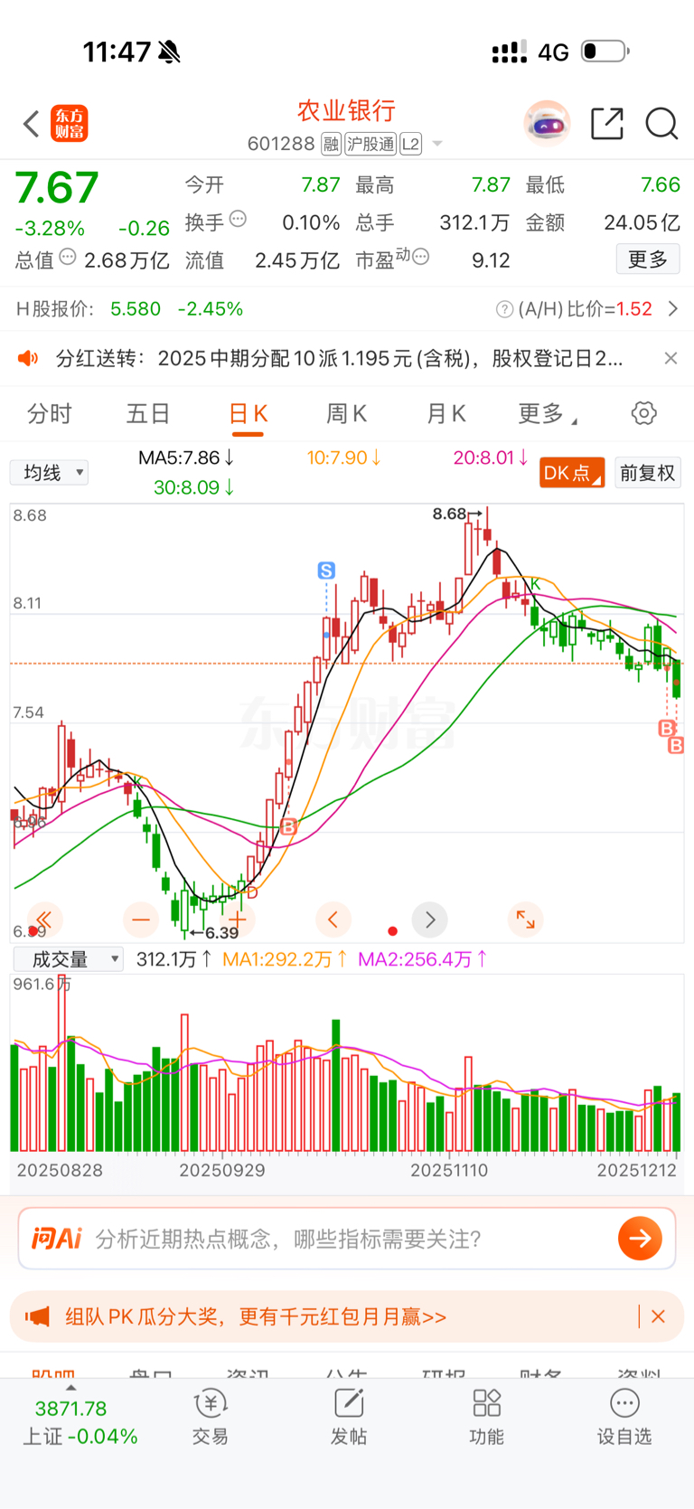 $农业银行(SH601288)$ 上一次的盈利全没有了,哈哈