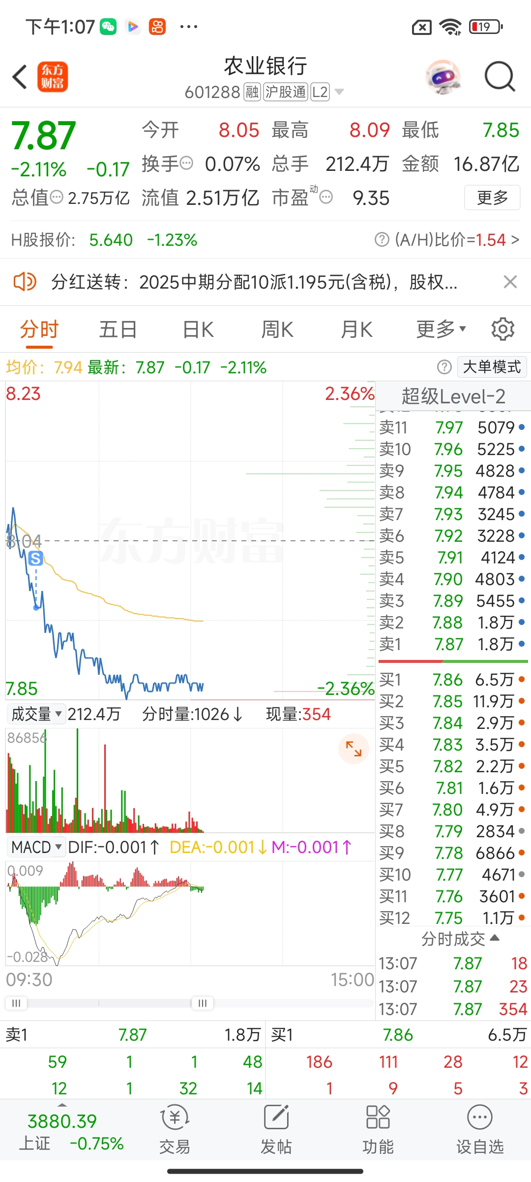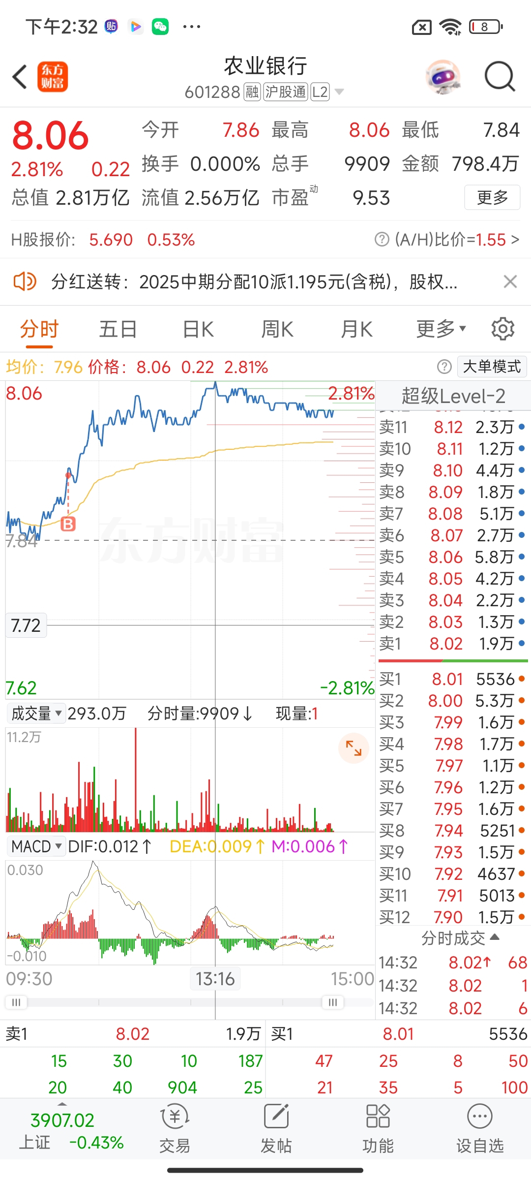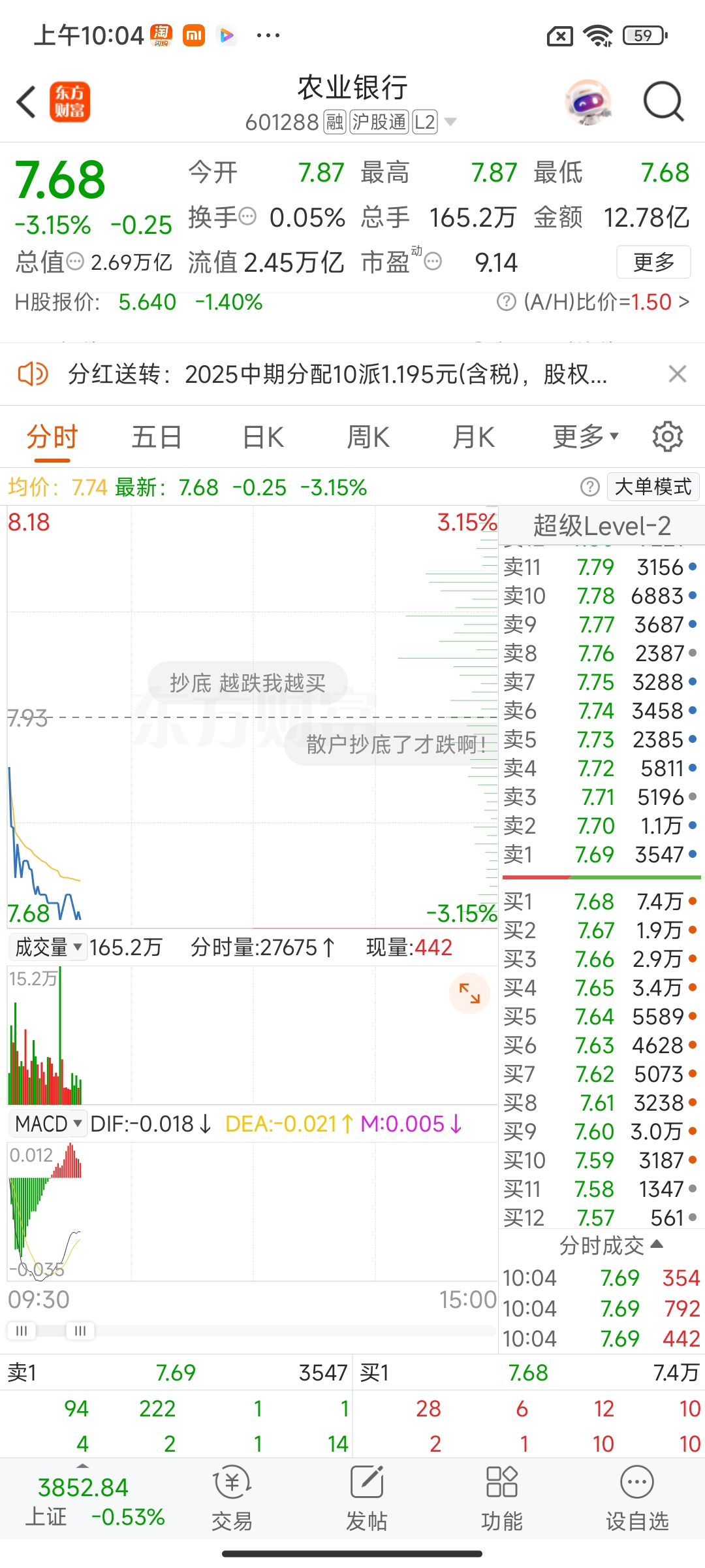 这几天的操作还可以,大前天买入农行,前天清了农行昨天进中行,今天竞价就清了中行