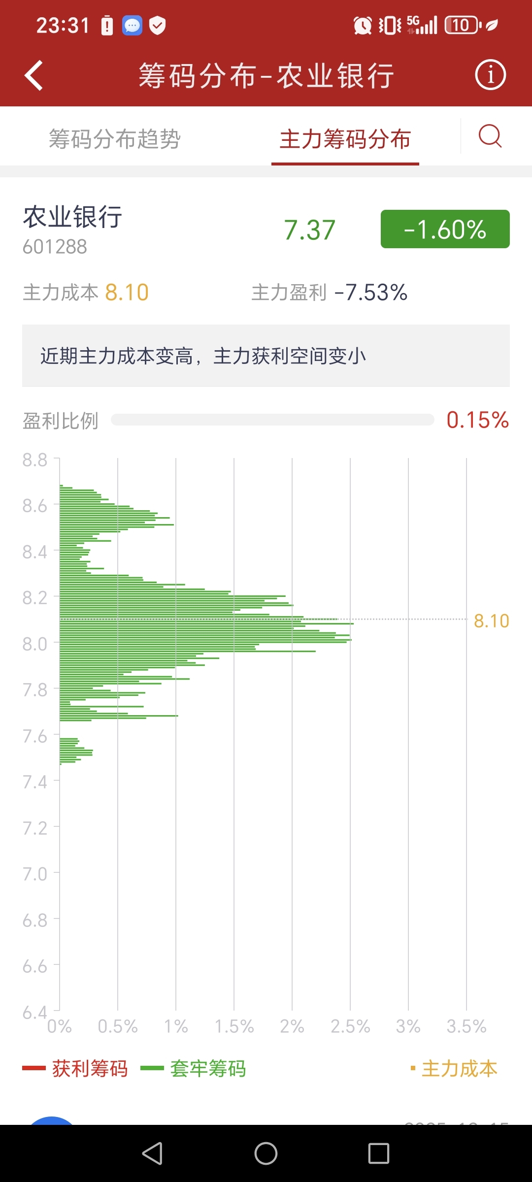 $农业银行(SH601288)$ 主力都能亏7个点,真的假的啊?