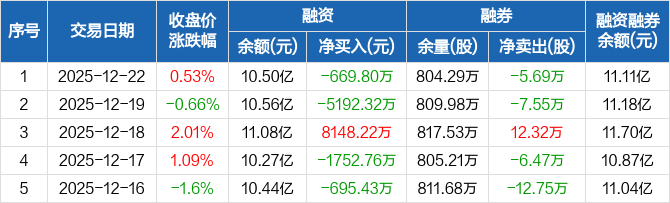 农业银行:融资净偿还669.8万元,融资余额10.5亿元(12-22)