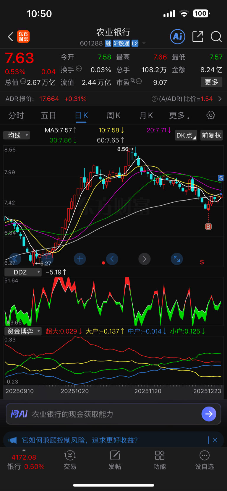 $农业银行(SH601288)$ 你涨吧,我卖了