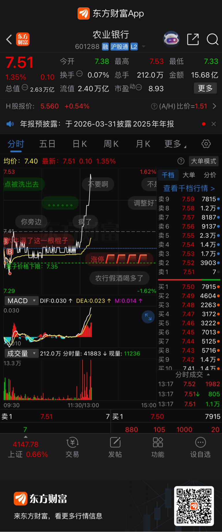$农业银行(SH601288)$ 以为还会跌,买少了
