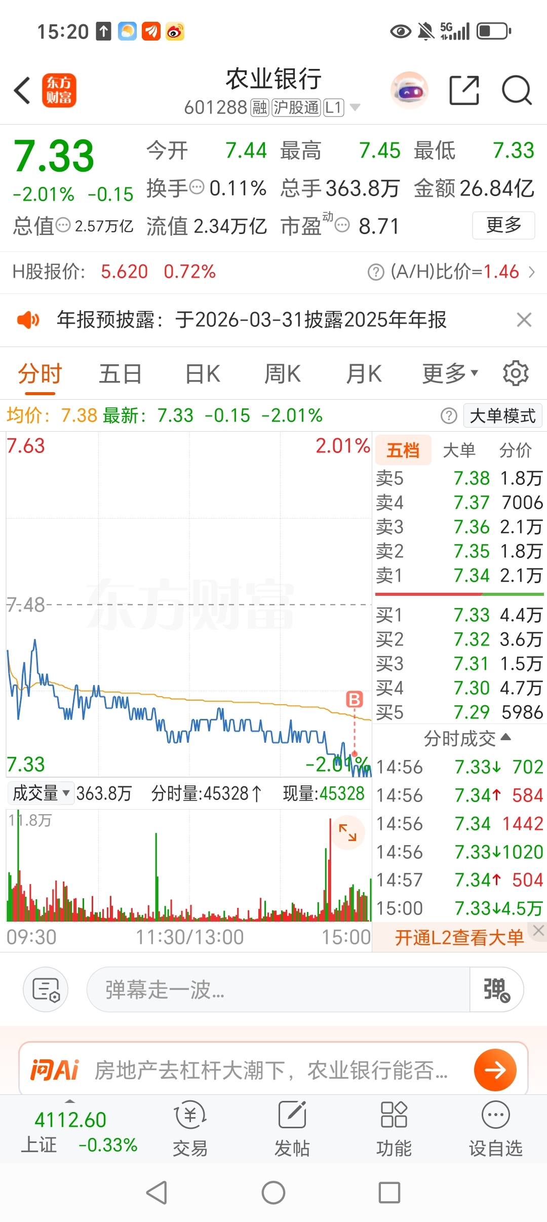 $农业银行(SH601288)$ 今天收盘前买了点,银行股当日跌幅小于两个点不要加仓