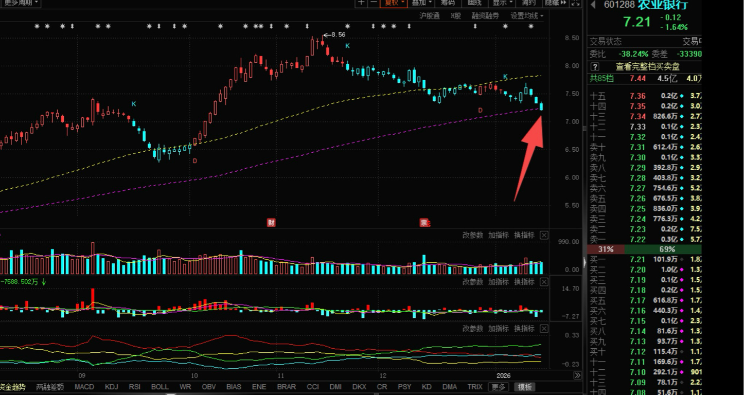 农行已经跌破安全线了,下周如果不反弹,就迎来长期大调整,只能清仓了!
