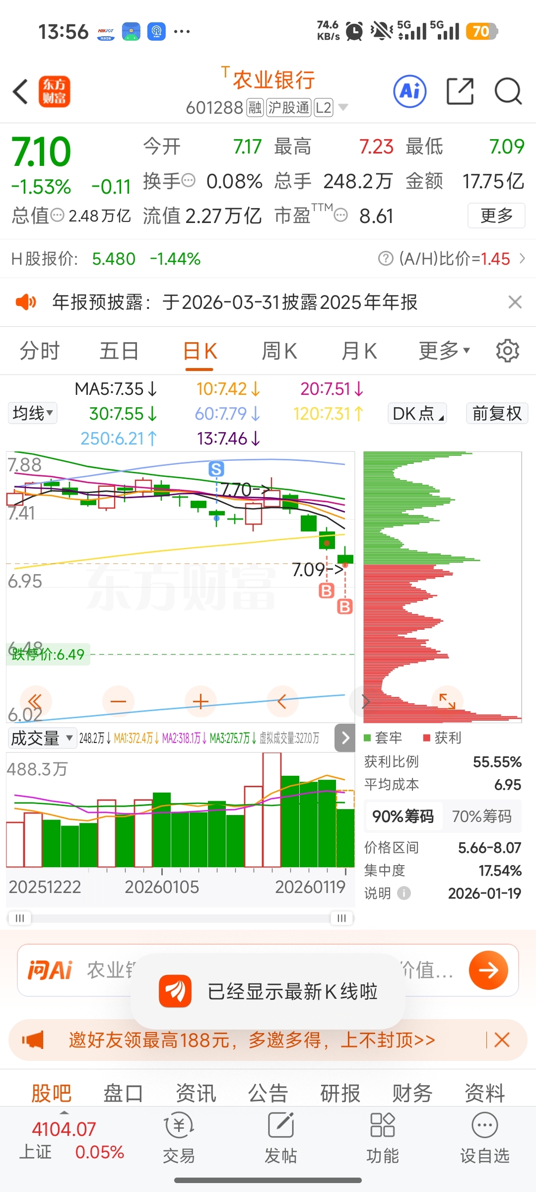 $农业银行(SH601288)$ 抓紧跌,我好吸筹,今天跌到7块最好,我一次性多吸一点。