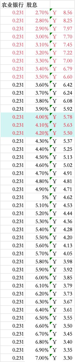 探讨下,农业银行多少股息合理,那对应的股价应该在这里企稳。