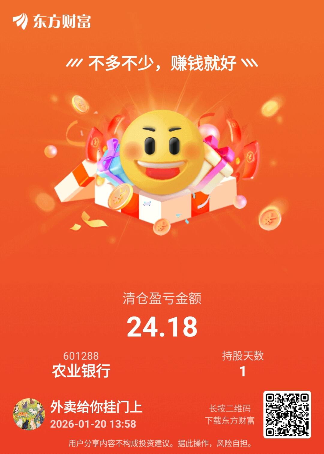 $农业银行(SH601288)$ 一天卖了,手续费10元#炒股日记#