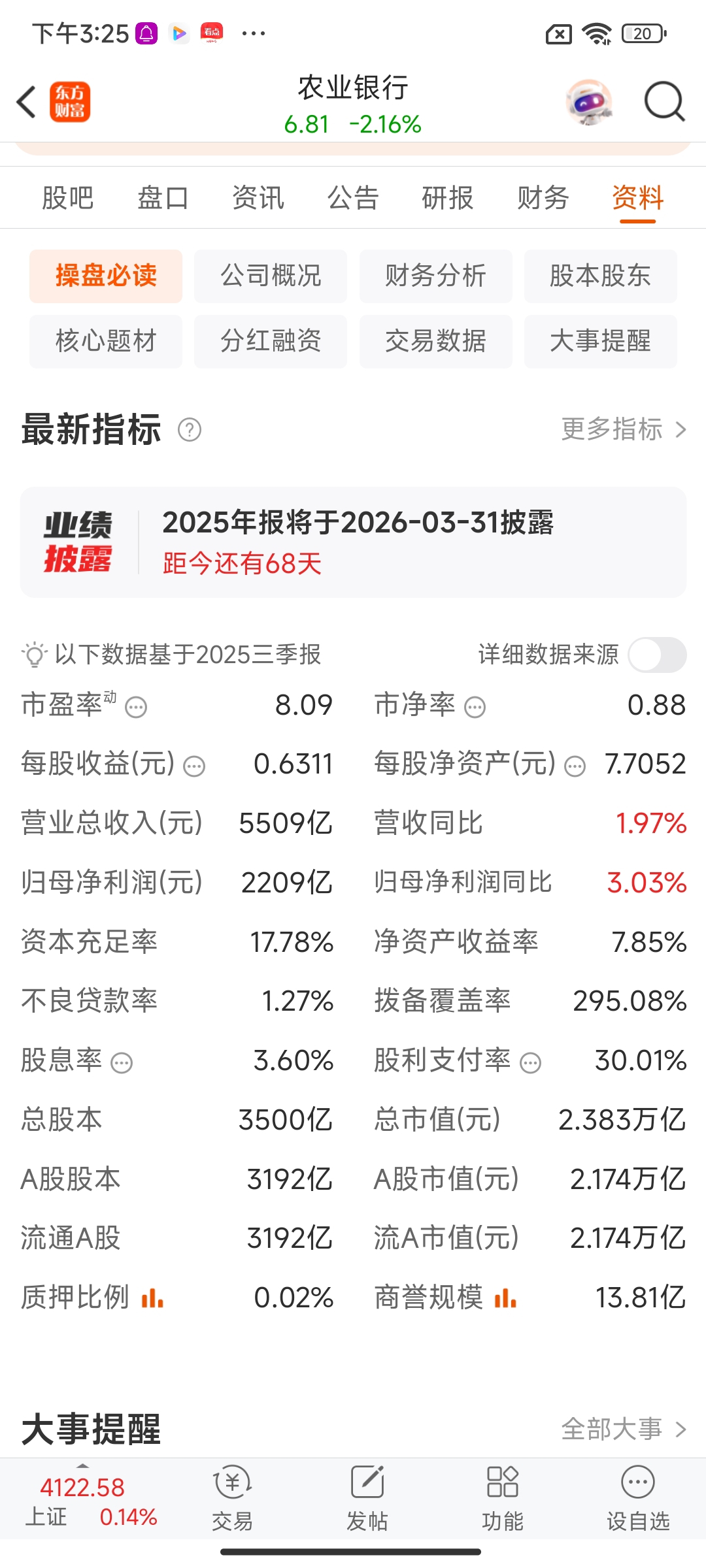 买农行算个屁价值投资,买招行才是价值投资,招行8个点股息,比农行多一倍多。