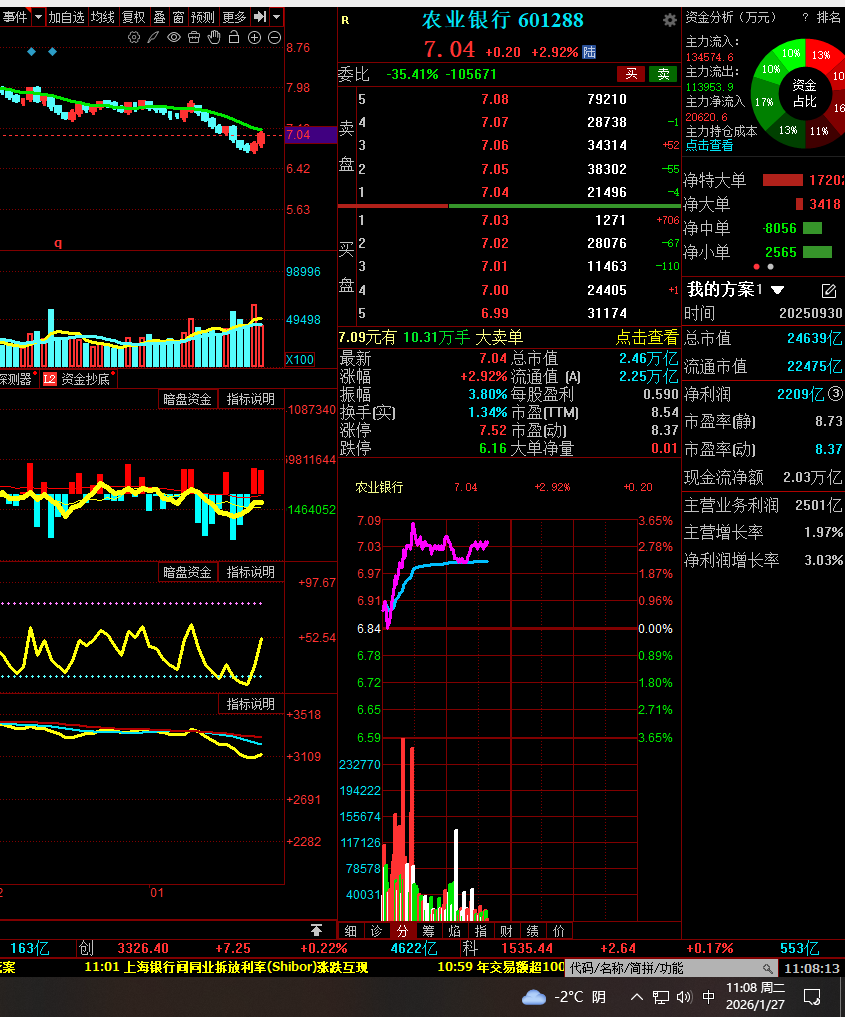 0127星期二 农业银行 主力动向